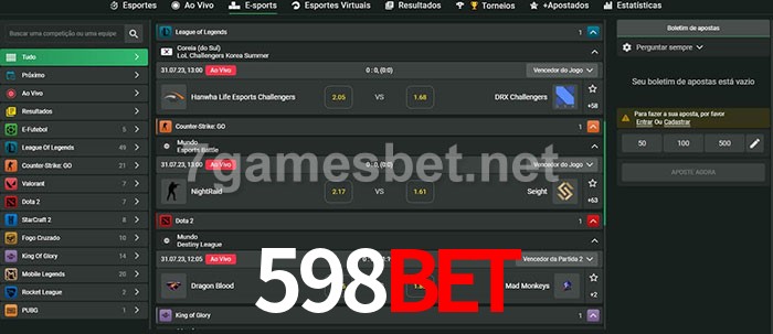 O 598bet oferece uma grande seleção de opções de apostas em e-sports com probabilidades competitivas